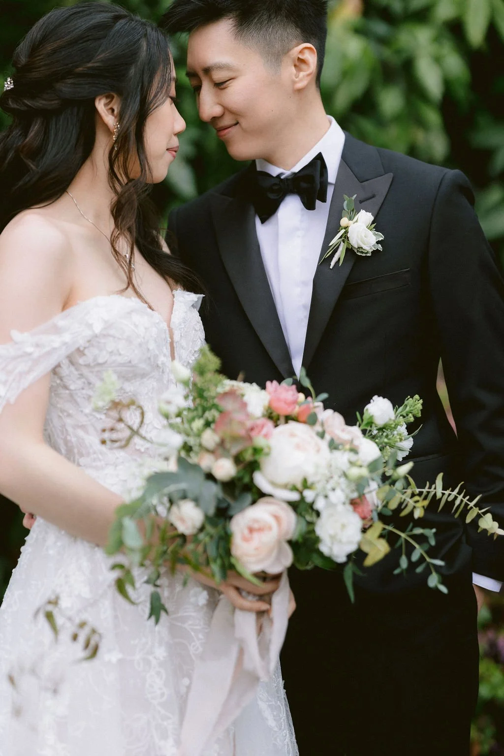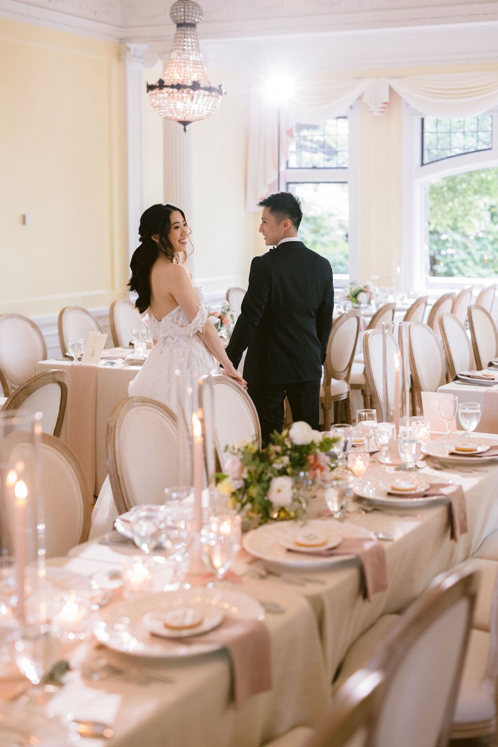 If I were to sum up what made this wedding special, it's the thoughtfulness that they put into every decision. They never failed to consider the experience of everyone involved - vendors included. From choosing a venue with multiple rain plans, (because we all know - Vancouver weather), to opting for a more simple font on their invitation address labels so as to make sorting and mailing easier for the postal service, to using solely unscented florals so as to not trigger anyone's allergies. They pulled back on extravagance in order to make the day comfortable for everyone, but still managed to keep everything looking elegant, elevated, and most importantly, meaningful - choosing to always circle back to the purpose of the gathering.